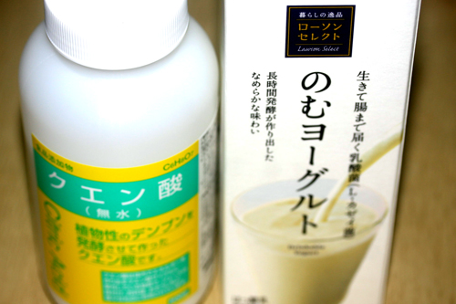 酢・レモン汁・レンネット・酒石酸・乳酸・など牛乳からカードを作る際に色々使ってきましたが、一番簡単で安く且つ美味しく仕上がるのがクエン酸でした。今回もこのクエン酸を使って飲むヨーグルトチーズを作ってみます。