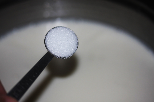 飲むヨーグルト(ローソン)を中火で40℃になるまで、ゆっくり攪拌します。40℃になったらクエン酸を投入し、しばらく攪拌したら1時間放置。