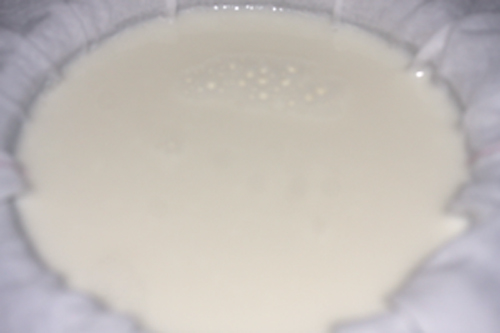それでも濾したら、ある程度カードが出来ているかなと思い、越してみましたが、凝固したのは僅か。というかこれは、最後に入れたヨーグルトですね。見事に失敗です。