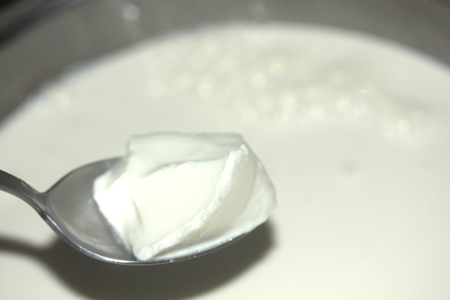 低脂肪牛乳にヨーグルトを加え40℃迄温める