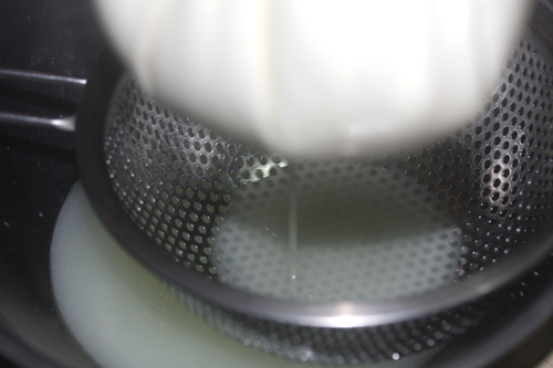 1時間後:布で濾す