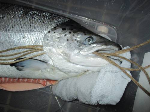 一匹丸ごと豪快に燻製をしてみたいなと思うのだ。そこで今回はキングサーモン5.2kgを魚屋さんに頼んで仕入れてもらった。値段は9000円。結構な出費だが、新年の縁起物として仕込む!