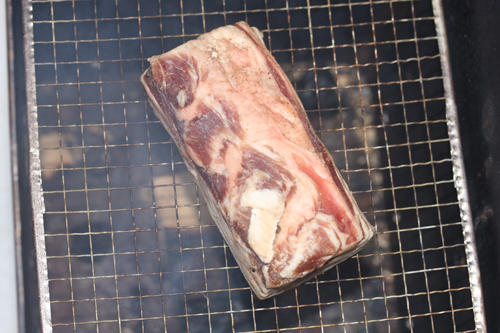 塩抜き後、肉の切れ端をフライパンで焼いて味見をしてください。もしここで塩辛かったら、塩抜きを続行して丁度良い塩加減になるまで調整してください。