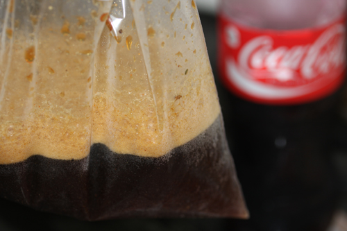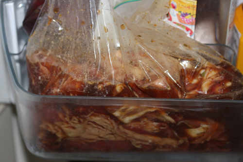・肉をジップロックへ投入。よく揉んでなじませます。