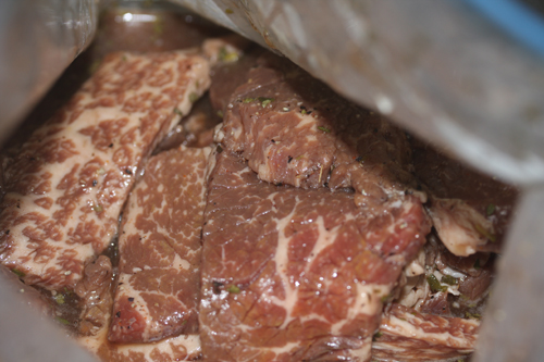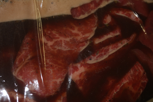 ・ジップロックへスライスした肉を一枚一枚丁寧に投入。