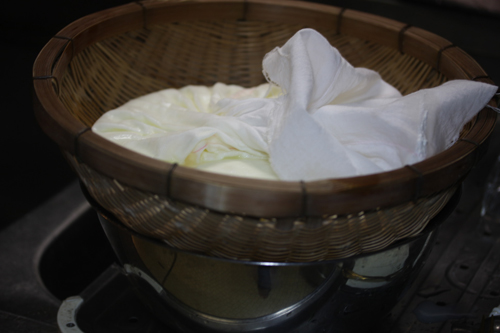 一晩水を切って完成。水分量は御好みで。この時点で水気が多いと思ったら絞ってください。