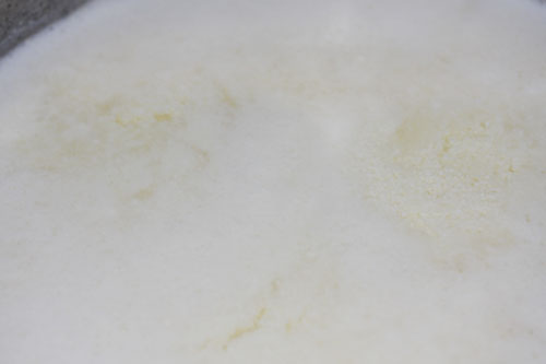 ※写真のように放置で仕上げる場合:ボウルが浅い場合は、途中ホエーを捨てた方が無難です。