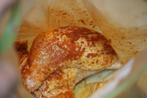 ハウスのタンドリーチキンの素で味付け。1日寝かせます。