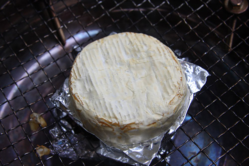▼煙が出始めたら弱火にしてカマンベール投入