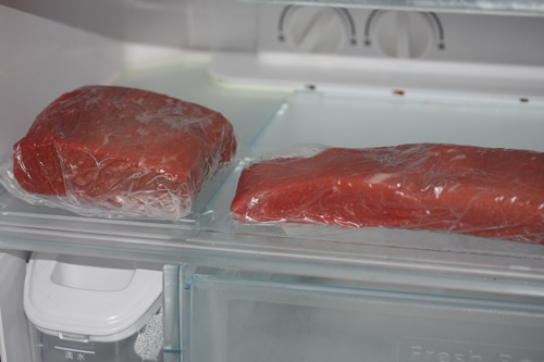 2週間後、冷蔵庫から取り出しカット。