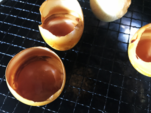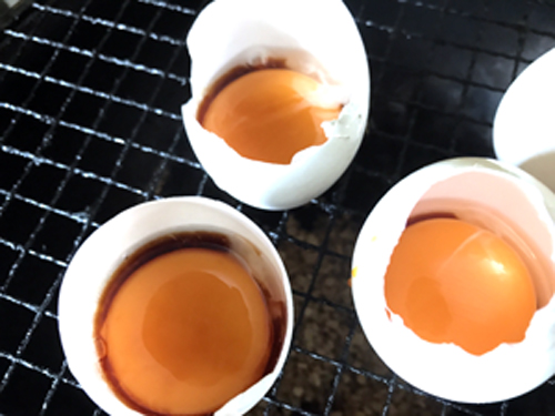 通常燻製卵はゆで卵を燻製する。