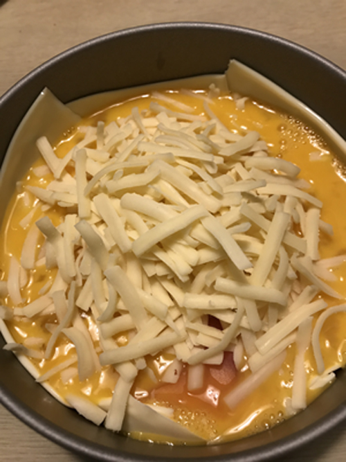 ▼溶いた卵を入れる。