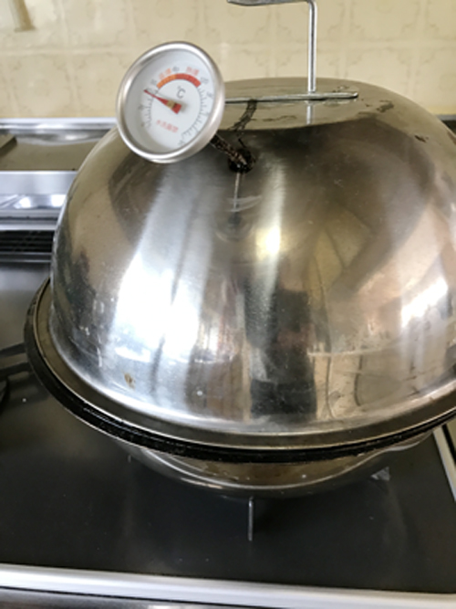 ▼カップをセットしたら蓋をして熱燻製15分~