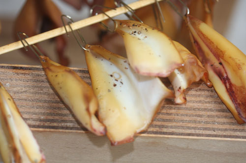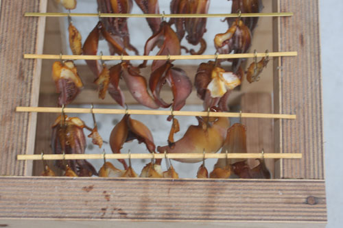 今回は燻製後の風乾燥を2日だけにして、ソフトタイプのイカ燻製に仕上げました。ハードタイプが好きな方は冷蔵庫なら7日程風乾燥をさせてください。