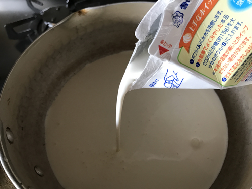沸騰手前まで温めます。