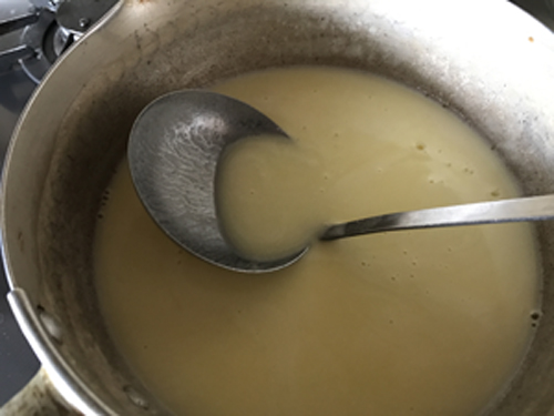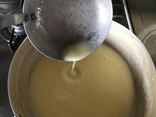 通常のチーズを作る工程と同じくホイップを温めます。