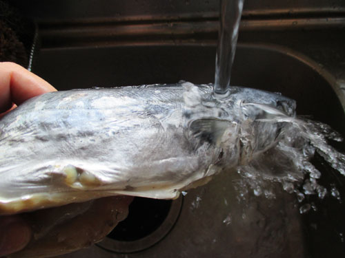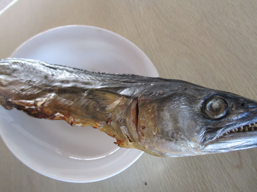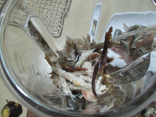 このまま食べてもかなり美味しいのですが、今回はふりかけにするので、身をほぐしてミキサーにかける準備をします。