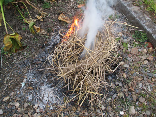 今回は初挑戦!藁で燻製。鰹のたたきなどで藁を使いますが燻製でも同じ!草の柔らかい煙が食欲をそそります。