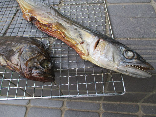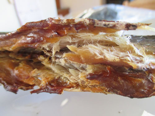 一番上の写真が燻製直後。その後外(冬限定)で30日脱水したのがこの写真。剥製になりましたw