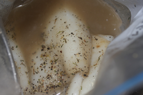 ジップロックに入れて冷蔵庫で一日漬け込みます。