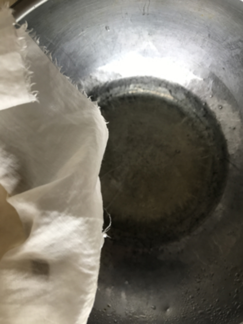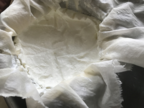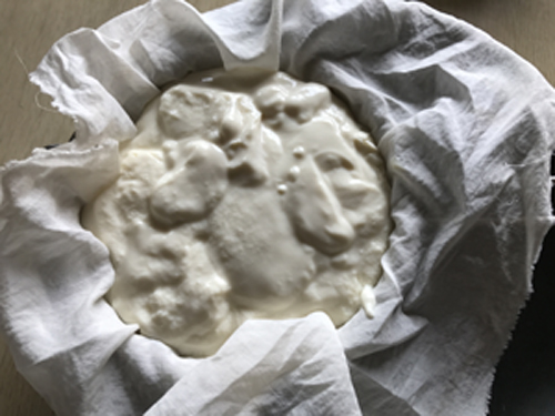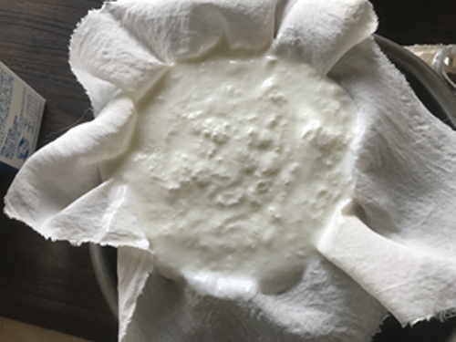 ▼ヨーグルトを布で濾します。