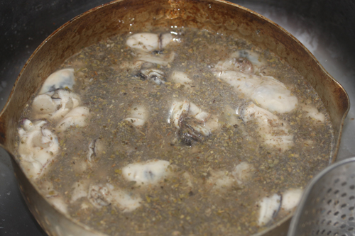 ソミュールを入れたジップロックに牡蠣をいれてシェイクをすると、手も汚れなく楽チンです!