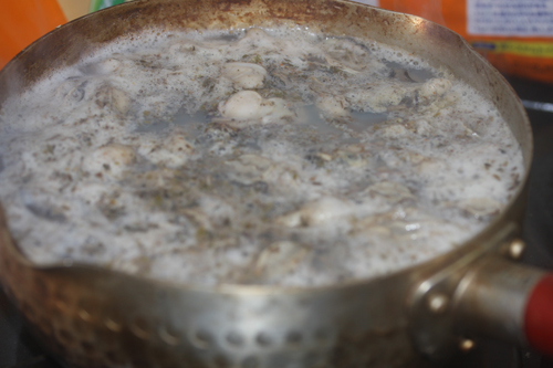ジップロックより取り出し水洗い。丁寧に洗ったらボイル処理。