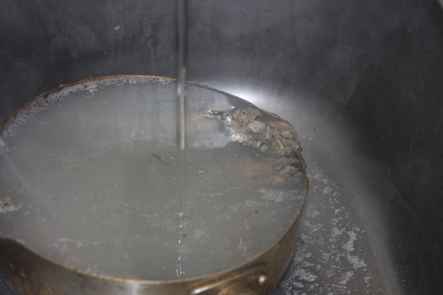 熱処理後、流水で冷やしながら、キッチンペーパーで水気をふき取り外で1日脱水をします。