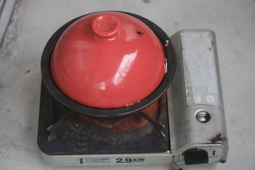 蓋をして弱火にして15分燻製