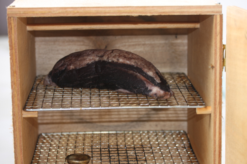 ▼燻製後バットに乗せ冷蔵庫で1~1.5ヶ月熟成