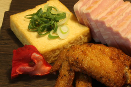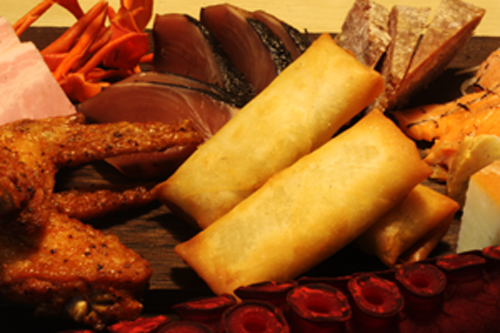 ▼揚げ手羽先・春巻きは燻製からしで