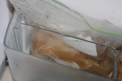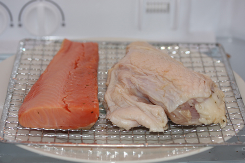 ・鶏胸肉・サーモンを入れて冷蔵庫で24時間ほど寝かせます。