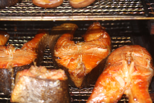 いい感じで熱燻製されてます。(つまみ食いNGです)