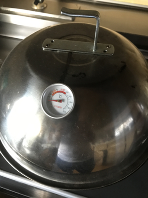熱燻製で20~30分程度燻製をします。燻製チップは定番の桜チップ。