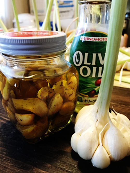 もちろんニンニクの香りがオイルに移るが、イタリアン系の料理にニンニクは欠かせない。スモーキーでオイリーで、ガーリックなオリーブオイル!簡単なので是非作っていただきたい。※日持ちは…とりあえず3年くらいはOK。