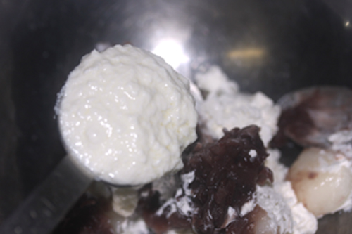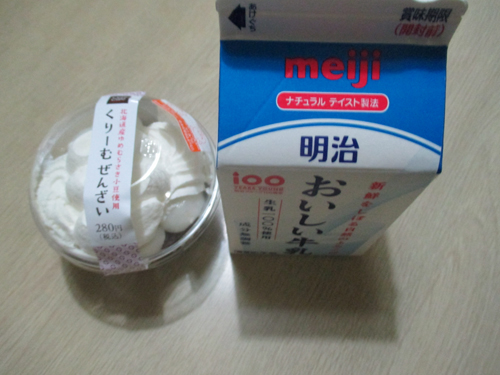 知り合いが店長のコンビニで悩んだ挙句、クリームぜんざいをゲット!これと今から作る乳酸カードチーズとブレンドさせる。クリームがのっかているから、マスカルポーネ風の和テイストチーズに仕上がるだろうと、期待が膨らむ。