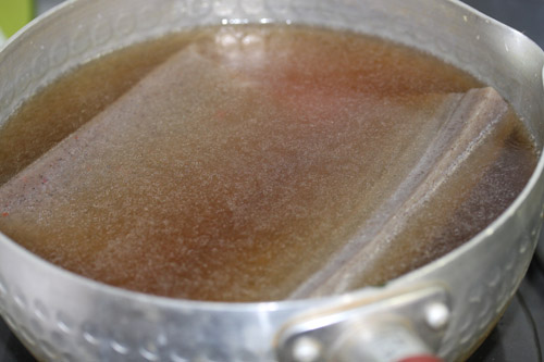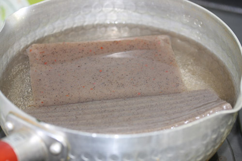 こんにゃくを湯通しします。