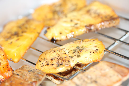 ブラックペッパーなど好みの香辛料をふりかけます。ココで通常塩も使うのですが今回塩は使いません。使っても良いのですが塩抜きとか面倒なので、塩や醤油と言った塩分が欲しい場合は出来上がった燻製に好みの量つけて食べた方が手っ取り早いです。