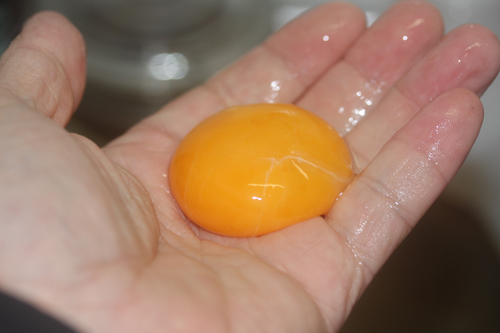 ・燻製卵黄(脱水しない状態):1個・通常の卵黄:1個