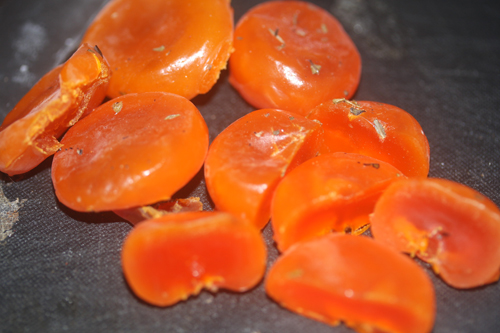 5日冷蔵庫で漬け込んだ後に、ソミュール液より取り出し、網に乗せて外で(冬場限定。夏場なら冷蔵庫で)1日脱水させます。