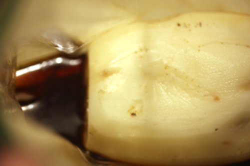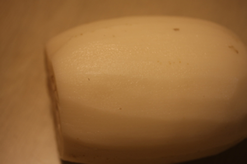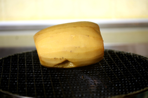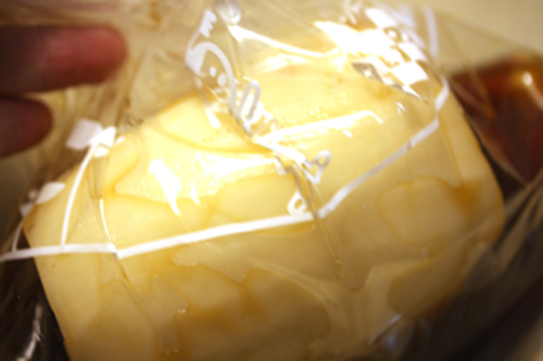 水洗いをして、皮を剥き、ソミュールに2日つけます。
