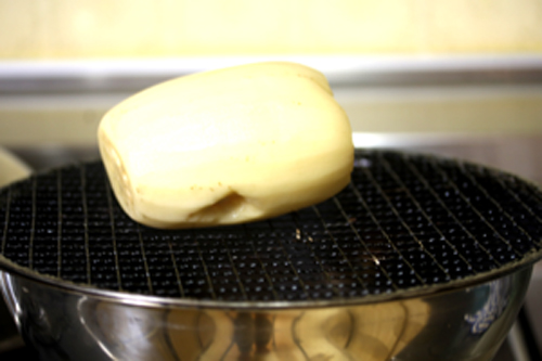 煙が出たられんこんをセットをして蓋をし20~30分燻製。途中れんこんに付く水分をふき取ります。