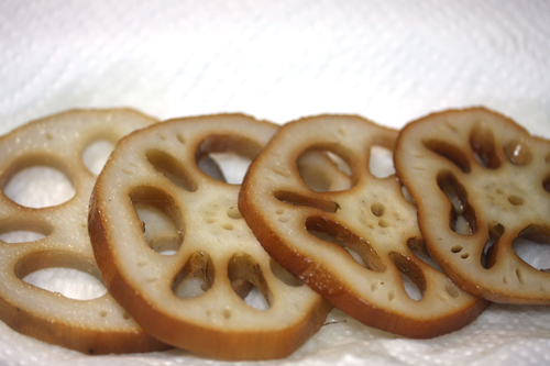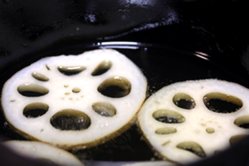 そのまま食べてもいいのですが、個人的には、1週間くらい風乾燥をさせ、脱水をさせたレンコンを、揚げるのがおススメ。カリカリでスモーキー!スナック感覚で食べれて、つまみに最高です。
