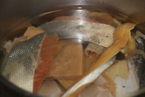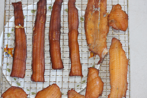 鮭とば仕上げにして完成です。冬の魚介燻製でこれが一番美味しい食べ方ですね。