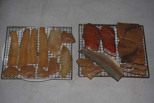 電熱器が無い場合はウッドでそのまま燻製して、風乾燥時に脱水をさせ干物にすればOKです。