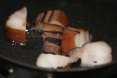 塩抜き後、肉の切れ端をフライパンで焼いて味見をしてください。もしここで塩辛かったら、塩抜きを続行して丁度良い塩加減になるまで調整してください。