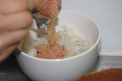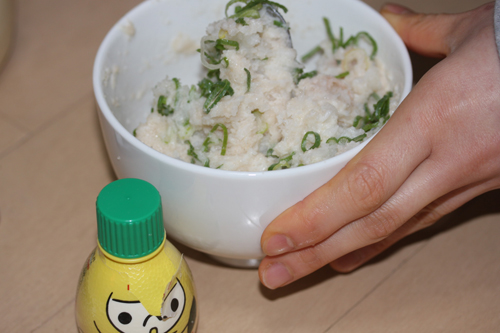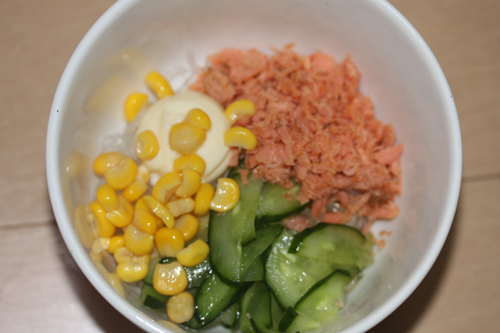 鮭フレークはキッチンペーパーでオイルを抜いてください。