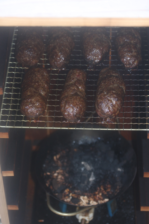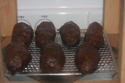 燻製後は1週間ほど脱水させて完成。2週間くらいだと完全なるドライソーセージになります。
