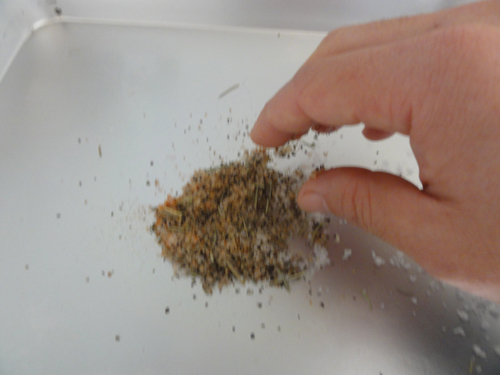 シイラの切り身に振り塩をします。