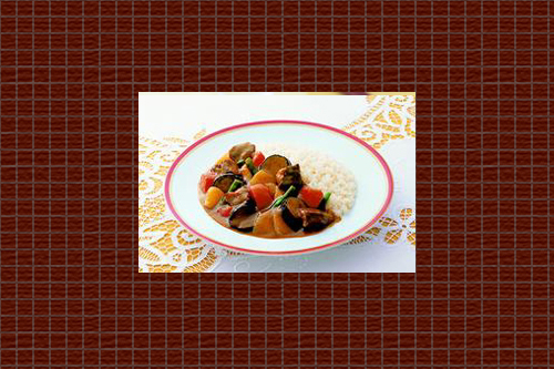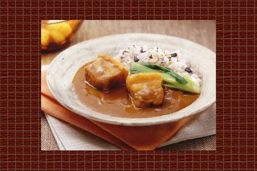 6. 皿に雑穀ごはんを盛り、ルウをかけ、(2)の青梗菜を添える。